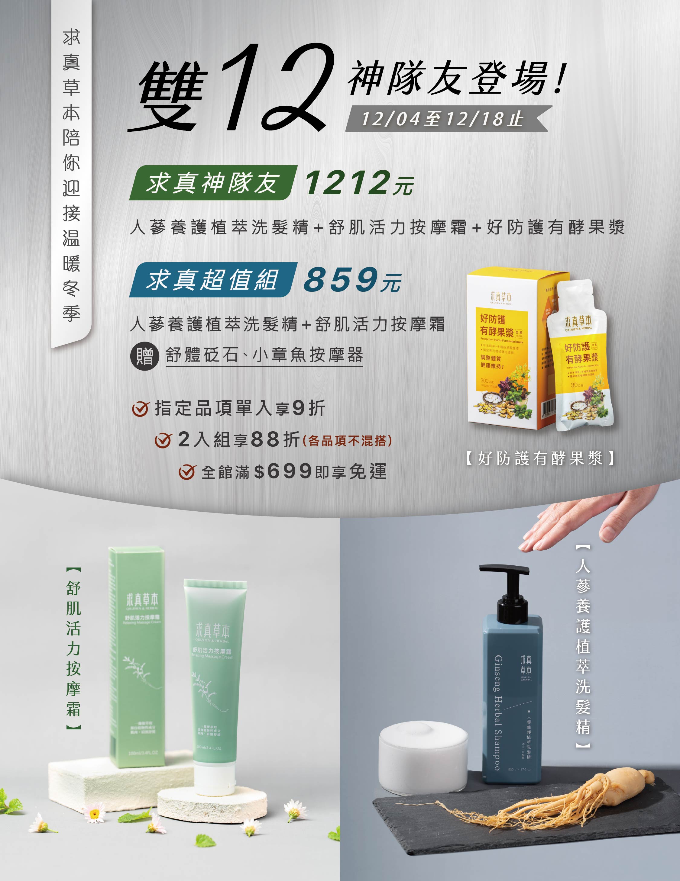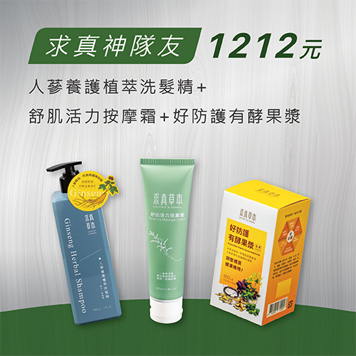 人蔘養護植萃洗髮精x1盒、舒肌活力按摩霜x1盒、好防護有酵果漿x1盒